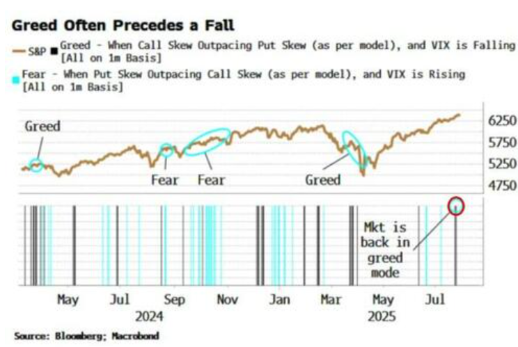 期权市场信号: 市场情绪已从反弹初期的“恐惧”主导(投资者用看跌期权对冲下行风险),转变为近期的“贪婪”主导。怀特将“贪婪机制”定义为:价外看涨期权的隐含波动率表现优于价外看跌期权,且恐慌指数VIX正在下降。历史证明,“贪婪很少有好结果,一旦它占据主导,股市在未来一到三个月内通常表现不佳。”