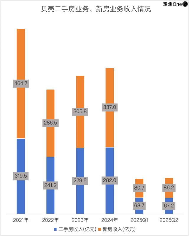 2021 年至 2024 年,存量房业务收入不仅没有增长,反而下降 11.7%。2025 年前两季度,其收入占比继续下滑。